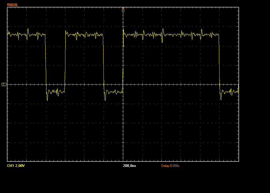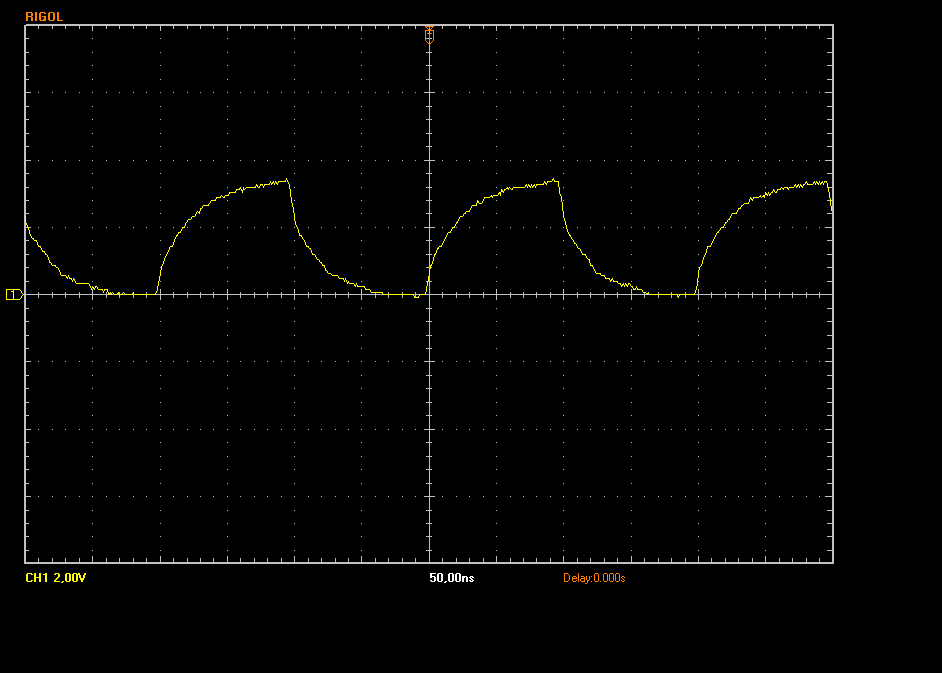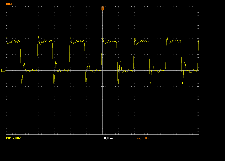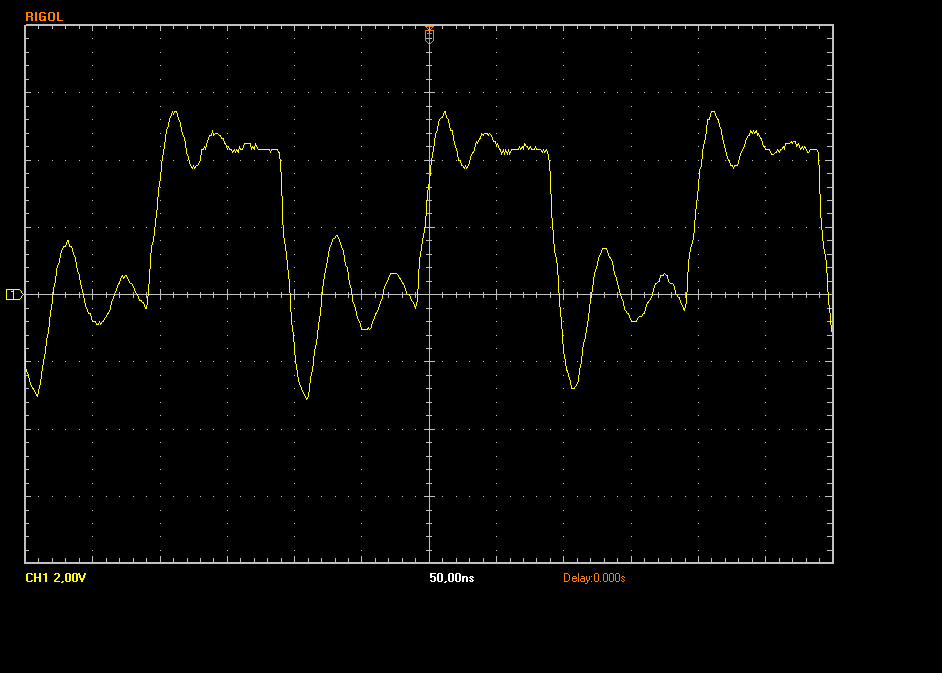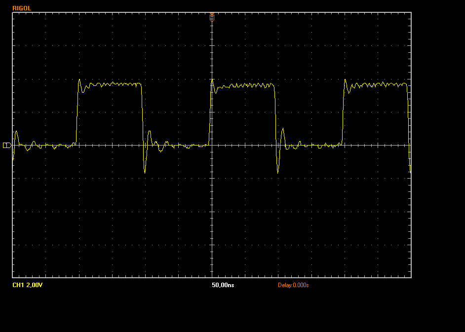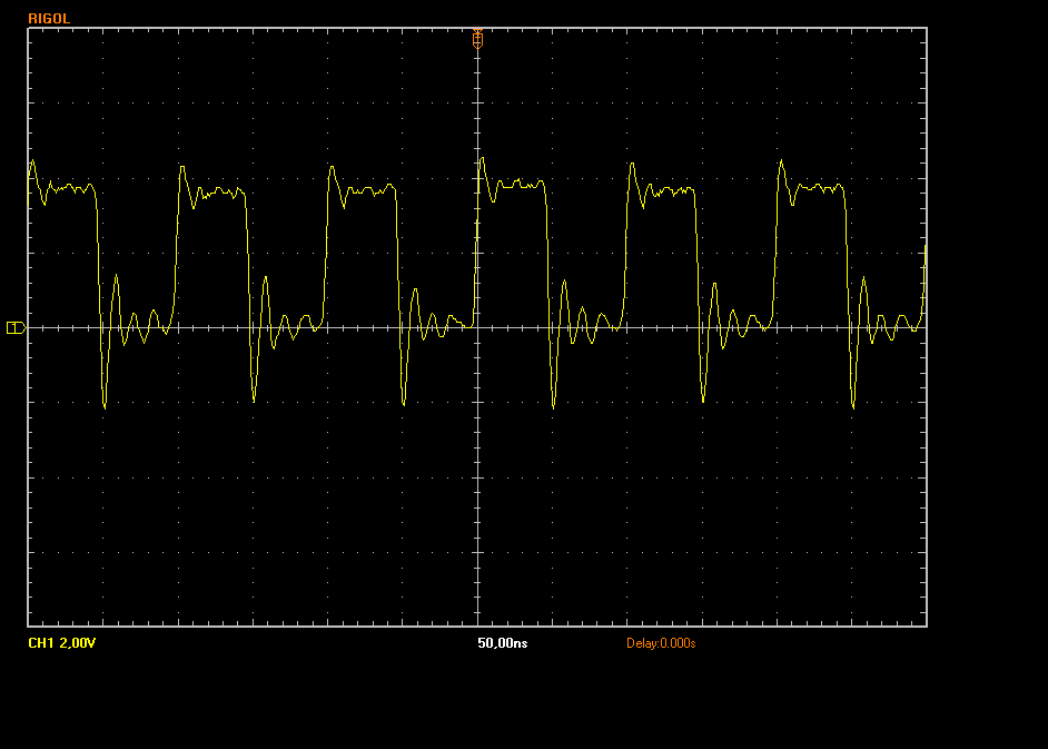 The PET816 board has a clock oscillator with 50 MHz frequency. I used this signal to get some measurements with the old and the new scope.