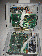 The 8296-D is a 8296 that also includes a 8250-LP disk drive in a single case. The disk drive is attached to the upper part of the case, underneath the monitor. Both, the computer and the drive share the same power supply. The board is thus not equipped with an own voltage regulator etc as is the 8296 (without drive).