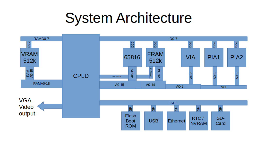 - 512k video RAM, 512k fast RAM accessible using banks on the W65816 CPU
