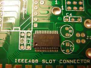 2. Position the chip: The chip as a circle mark that notes the position of pin 1. This circle must be in the direction of the circle as on the board.